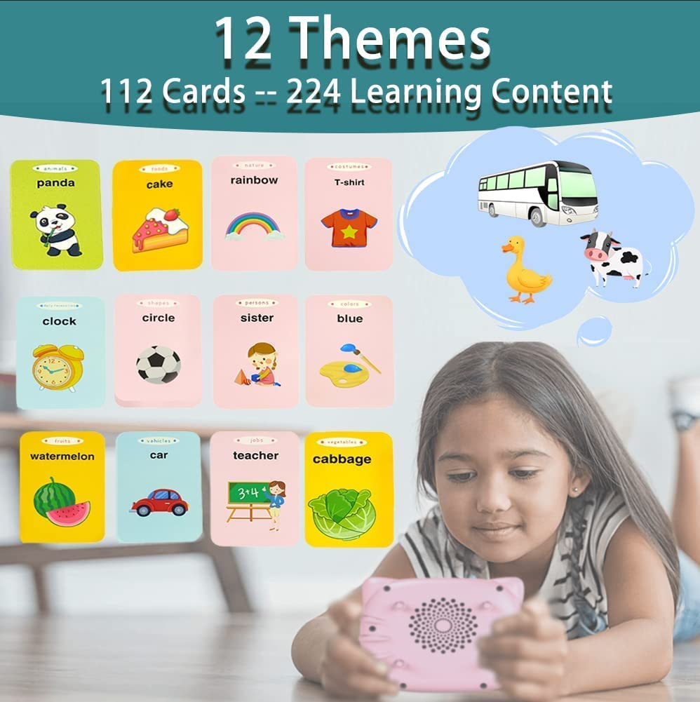 Audible Flash Cards Device with 112 pcs Double-Sided Cards for Toddlers.